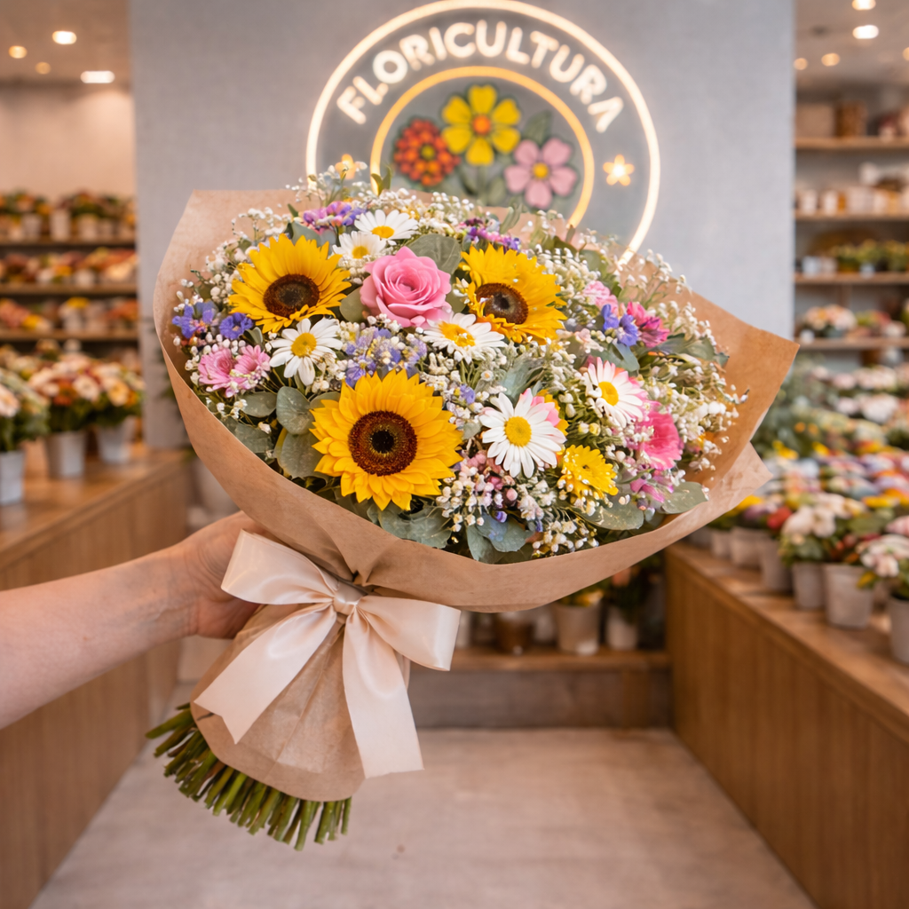 Flores do Campo – Grande com mix de flores coloridas, montagem artística e folhagens selecionadas.